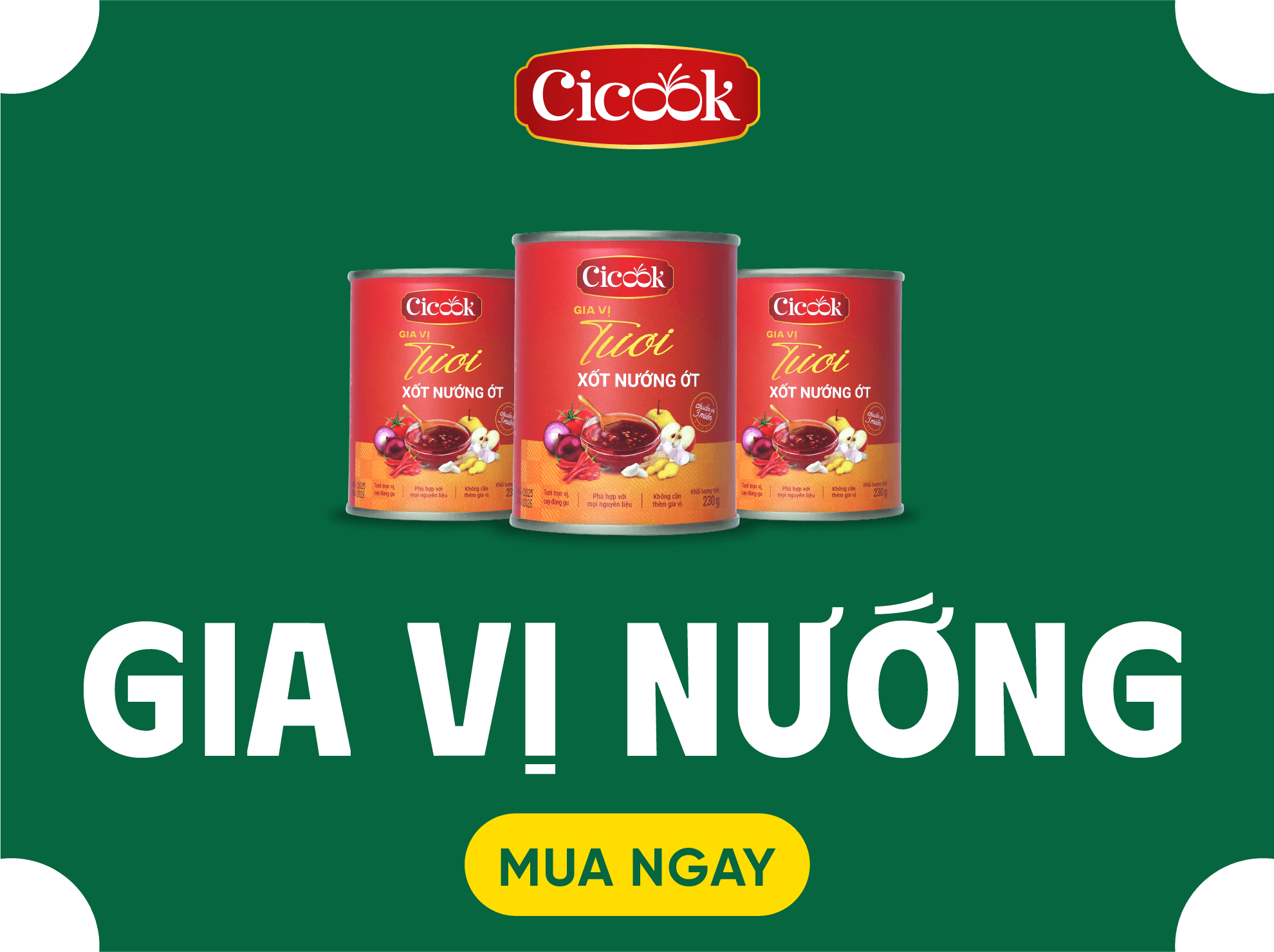 Cicook là thương hiệu tiên phong về sản xuất gia vị tươi tại Việt Nam. Các sản phẩm gia vị tươi của Cicook được chắt lọc từ nông sản Việt, kết hợp cùng với công thức phối trộn không qua nhiều quy trình xử lý công nghiệp giúp giữ lại hương vị nguyên bản từ lúc thu hoạch đến khi chế biến.