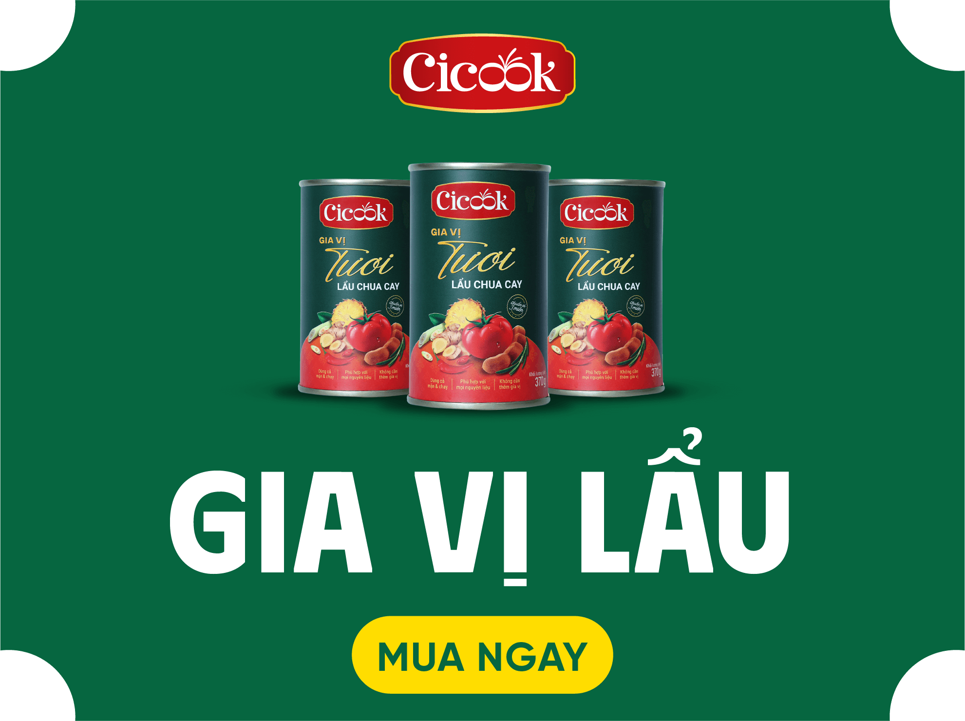 Với sự đồng hành của gia vị tươi Cicook, bất kỳ ai, dù bạn là người nội trợ bận rộn, một bạn trẻ sống một mình giữa phố thị, hay một kiều bào nơi đất khách… bạn vẫn có thể nấu nên một bữa ăn đậm đà vị quê nhà, chỉ bằng vài bước đơn giản. Cùng với sự đồng hành của Cicook, mỗi hạt gia vị được chọn lựa kỹ lưỡng, gói trọn trong đó là tâm huyết của người nông dân và sự tinh tế của thiên nhiên, mang đến cho bạn trải nghiệm trọn vẹn và chân thật nhất về ẩm thực Việt.