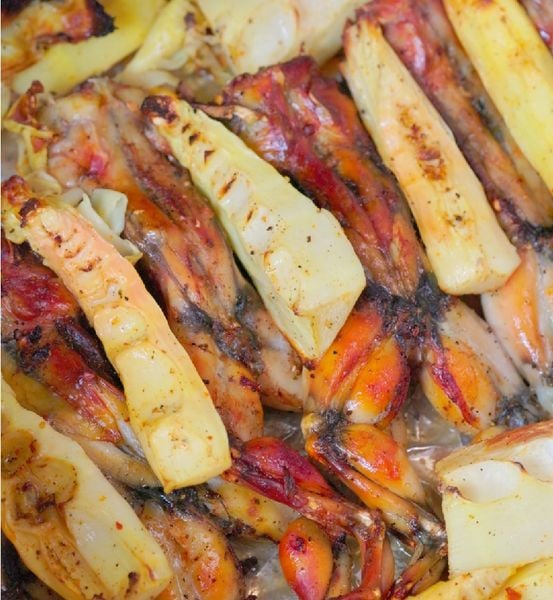 Khi nướng kèm măng, hương thơm sẽ càng hấp dẫn và giúp món ăn bớt ngấy.