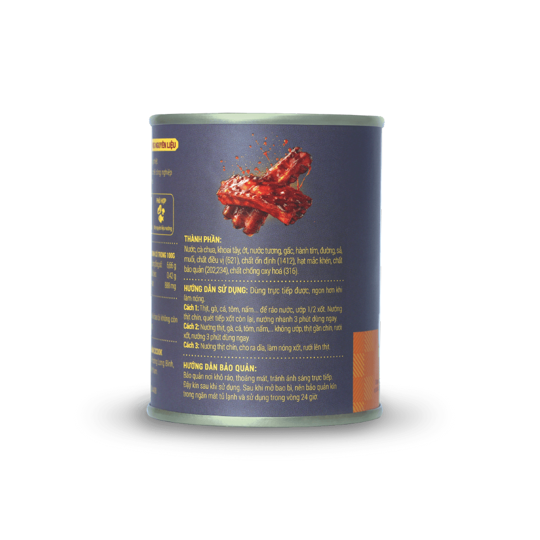 - Bảo quản Xốt Nướng Smoky: Nơi khô ráo, thoáng mát, tránh ánh nắng trực tiếp. Bảo quản trong ngăn mát tủ lạnh sau khi đã mở lon, nên sử dụng trong vòng 24h.